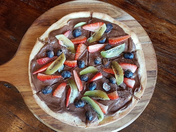 Cheese, ham, salami, onion, capsicum, mushrooms, olives, bacon, chicken, pineapple, anchovies